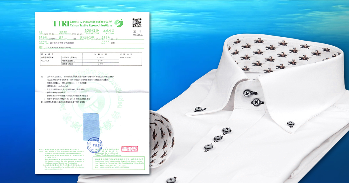 衣十五襯衫抗菌檢驗報告(衣十五提供)