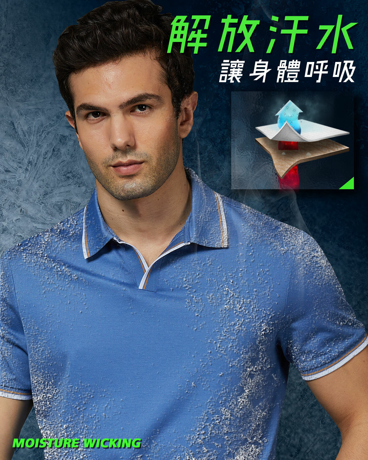 BreezeFlex™ 機能布料,結合47%聚酯纖維 + 23%棉 + 23%莫代爾 + 3%蠶絲 + 4%彈性纖維,打造輕盈快乾 × 絲滑親膚 × 高彈貼合的穿著體驗。