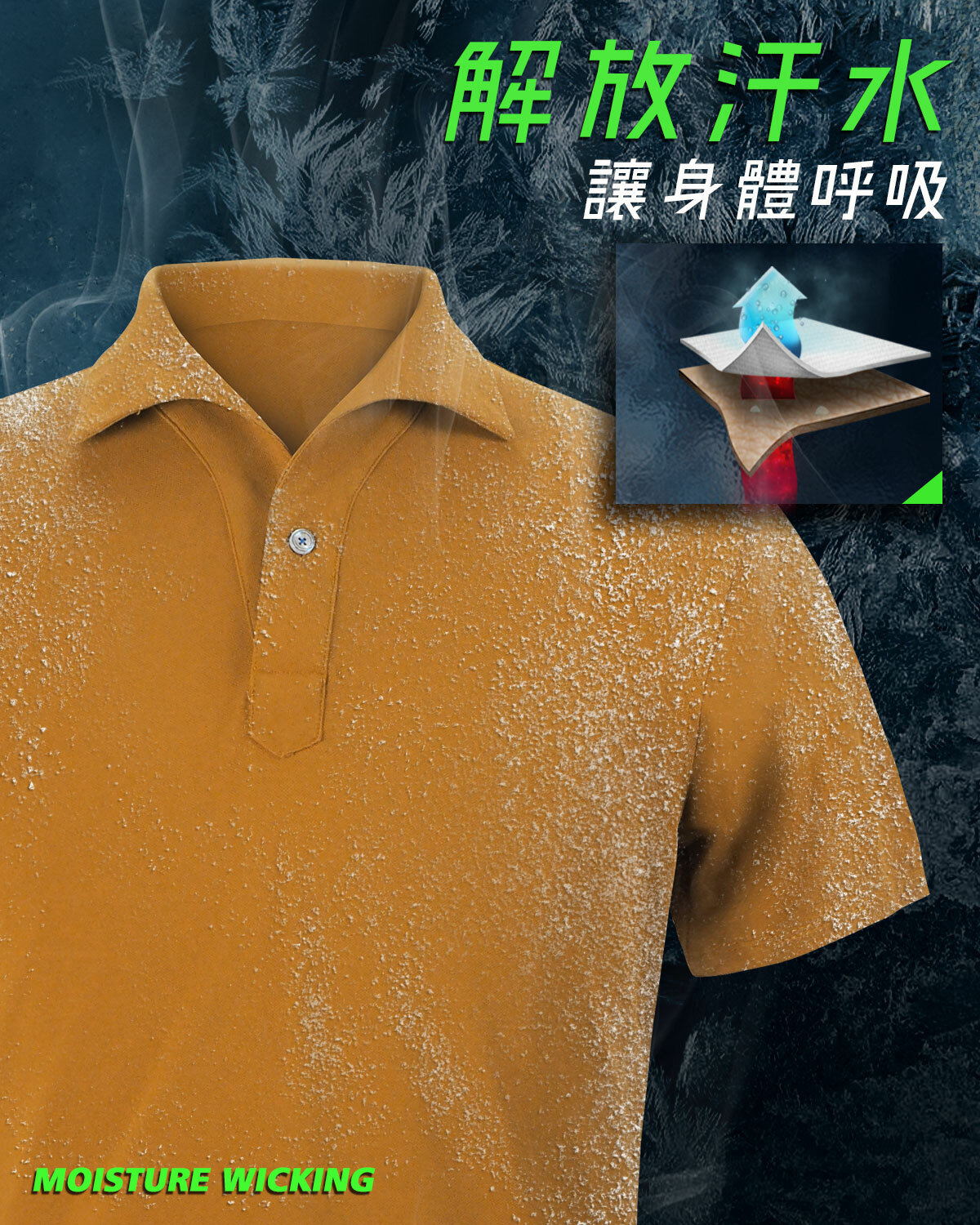 💦26.4%聚酯纖維,快乾抗皺,時刻保持完美形象。