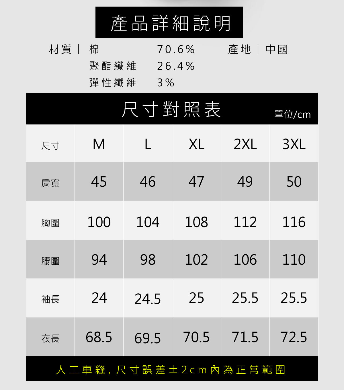 💨 70.6% 高棉混紡,透氣親膚,告別悶熱不適。