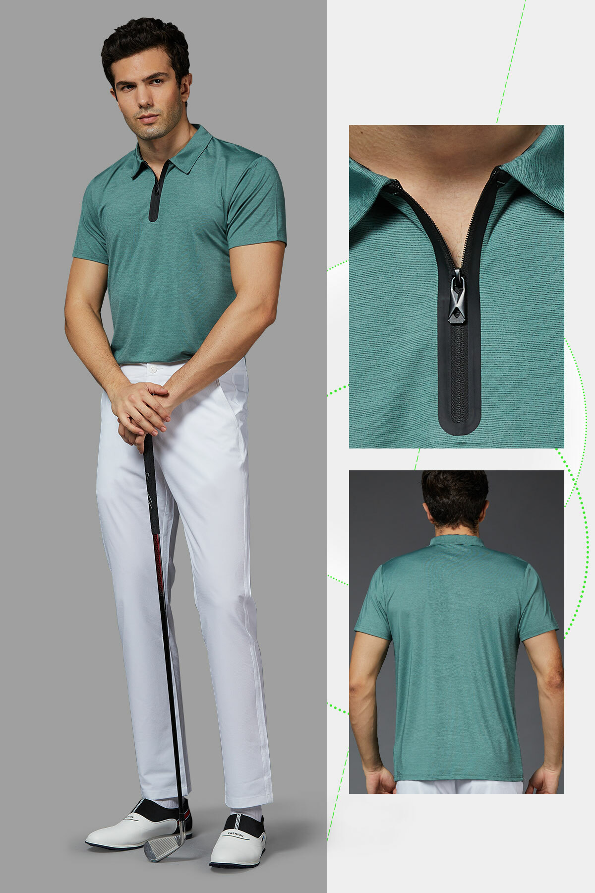 🔹前拉鍊門襟設計:打破傳統POLO釦設計,更具速度感與未來感,展現行動紳士品味。