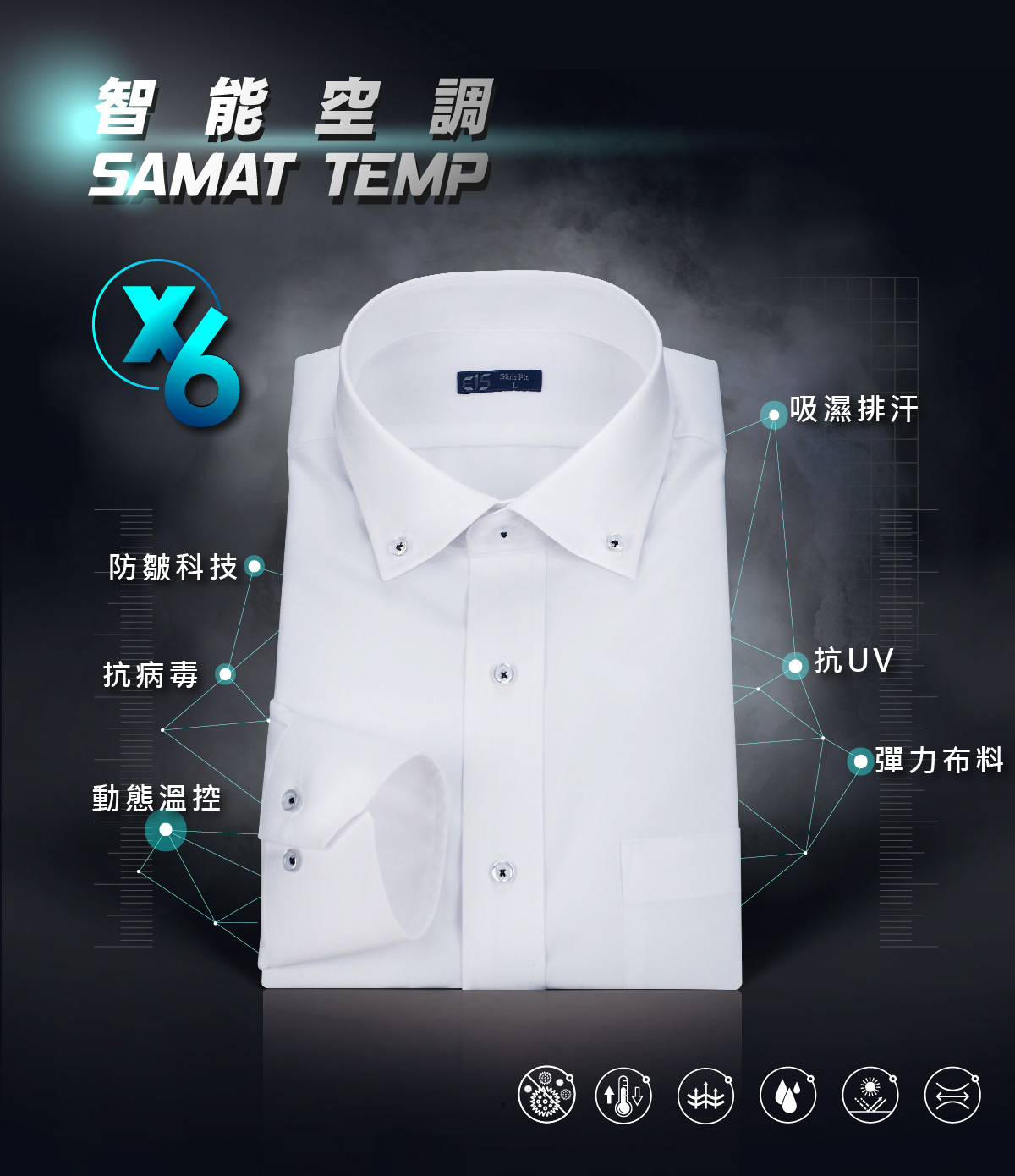 Smart Temp 涼感商務襯衫【白色系列】│動態涼感溫控、吸濕排汗、防皺、除臭、ViroblocK、彈力