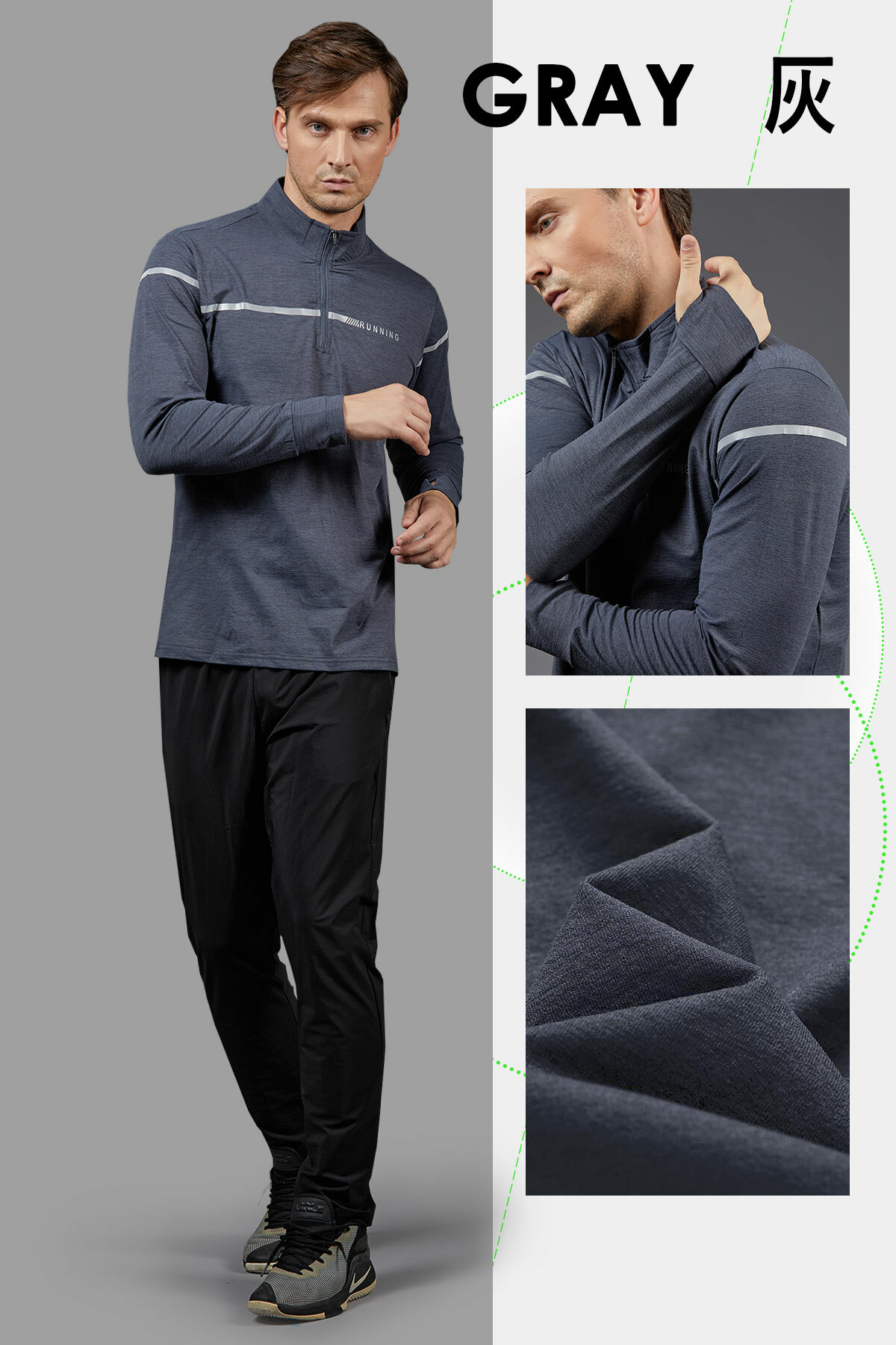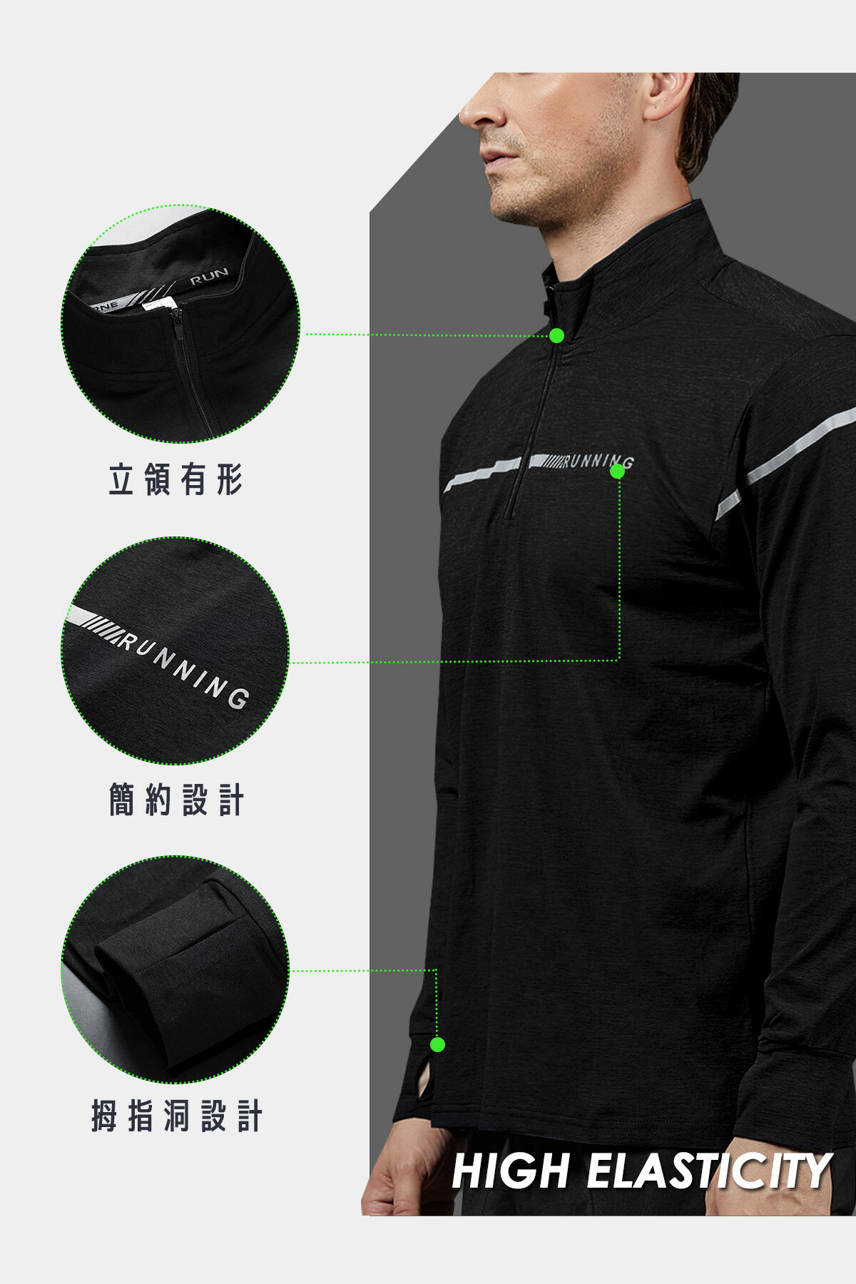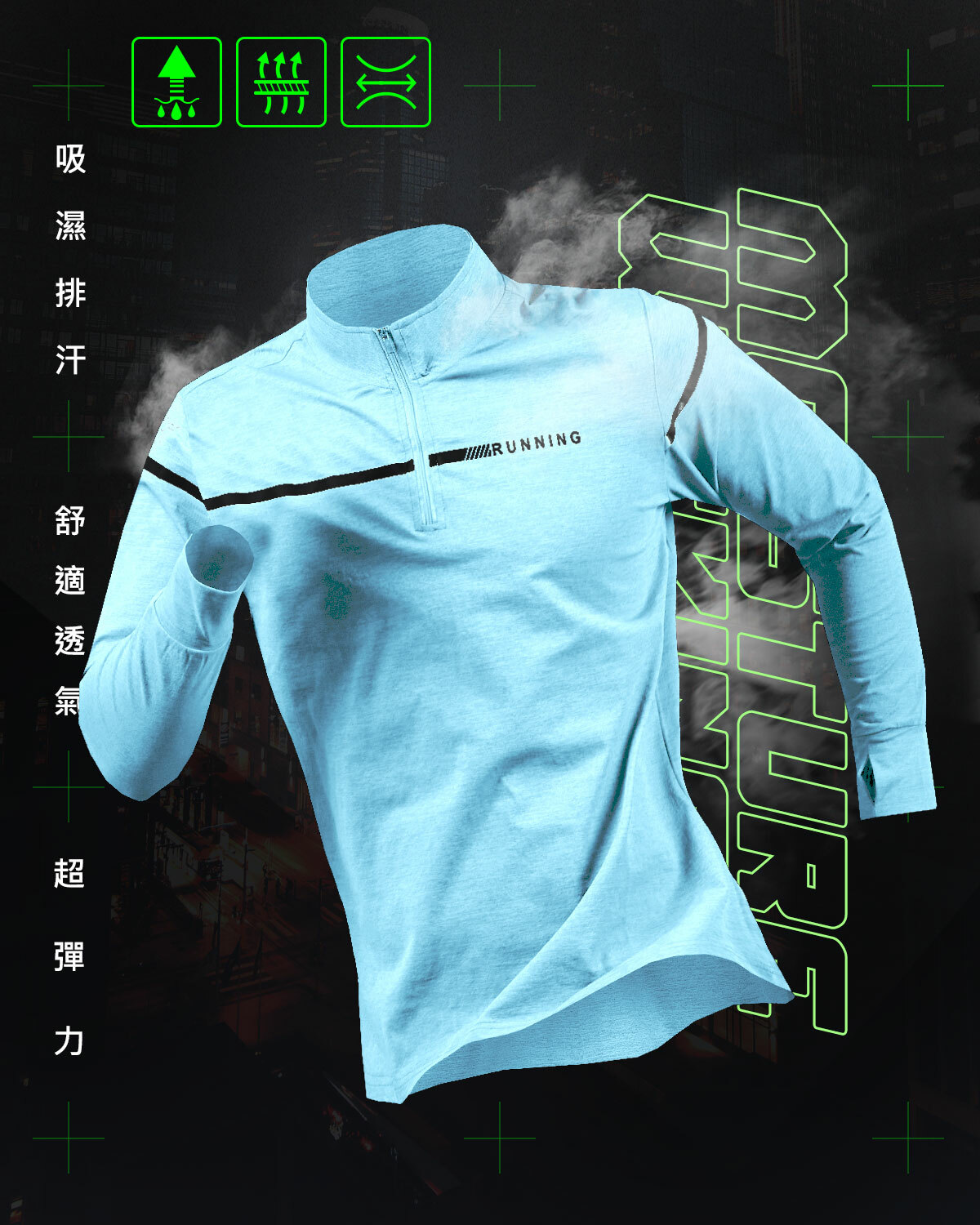吸濕排汗長袖立領衫│透氣、高彈力│T-RUNNING系列