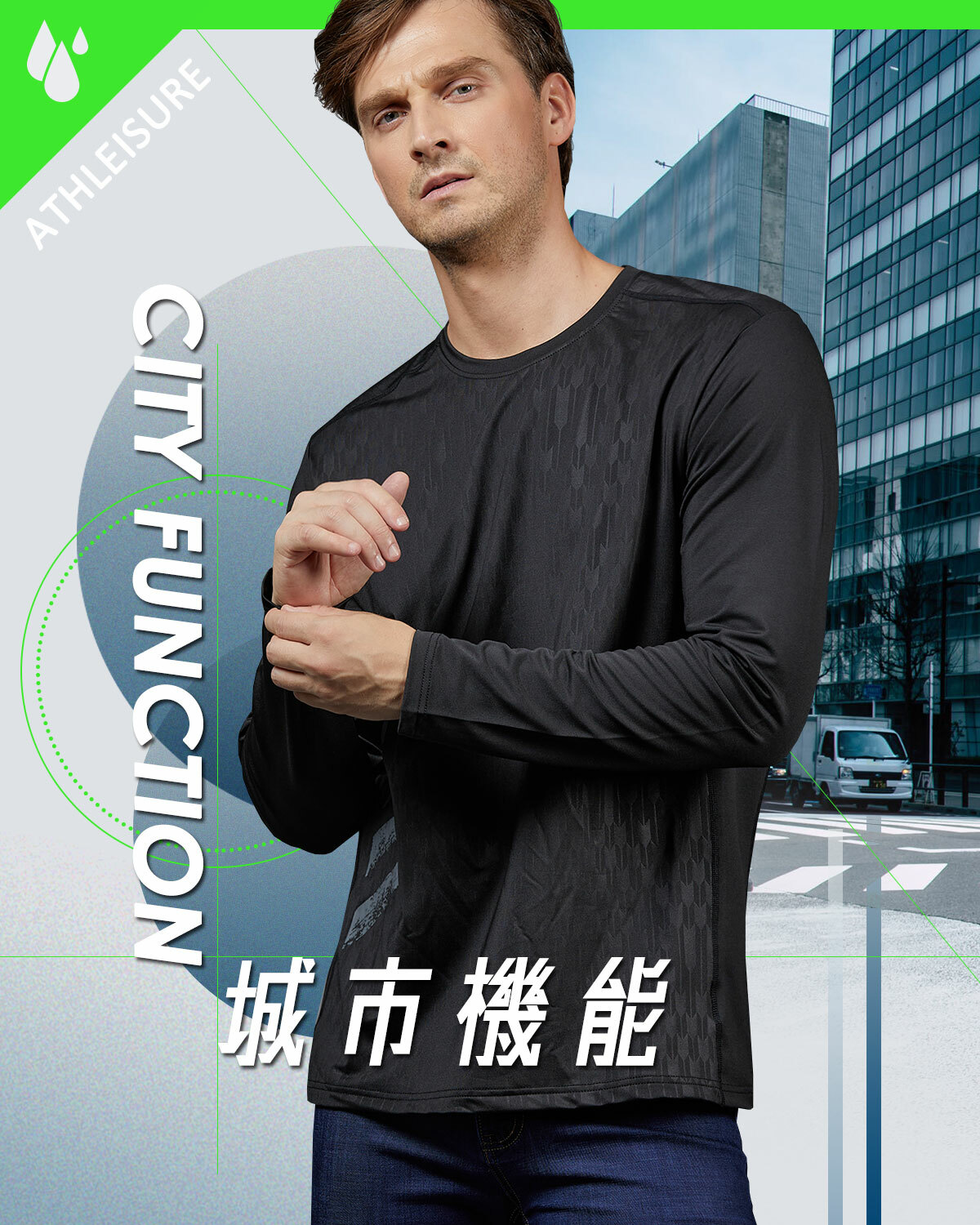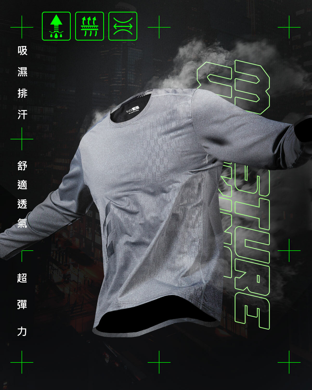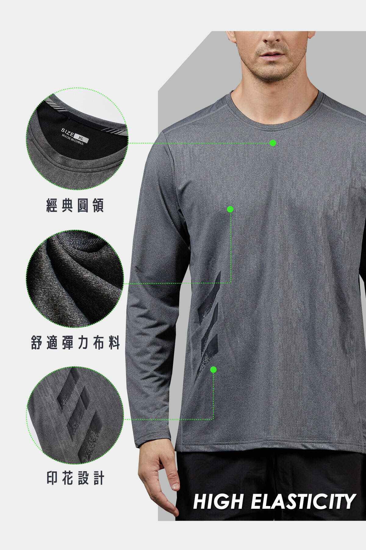 三斜線長袖T-Shirt│吸濕排汗、透氣、高彈力