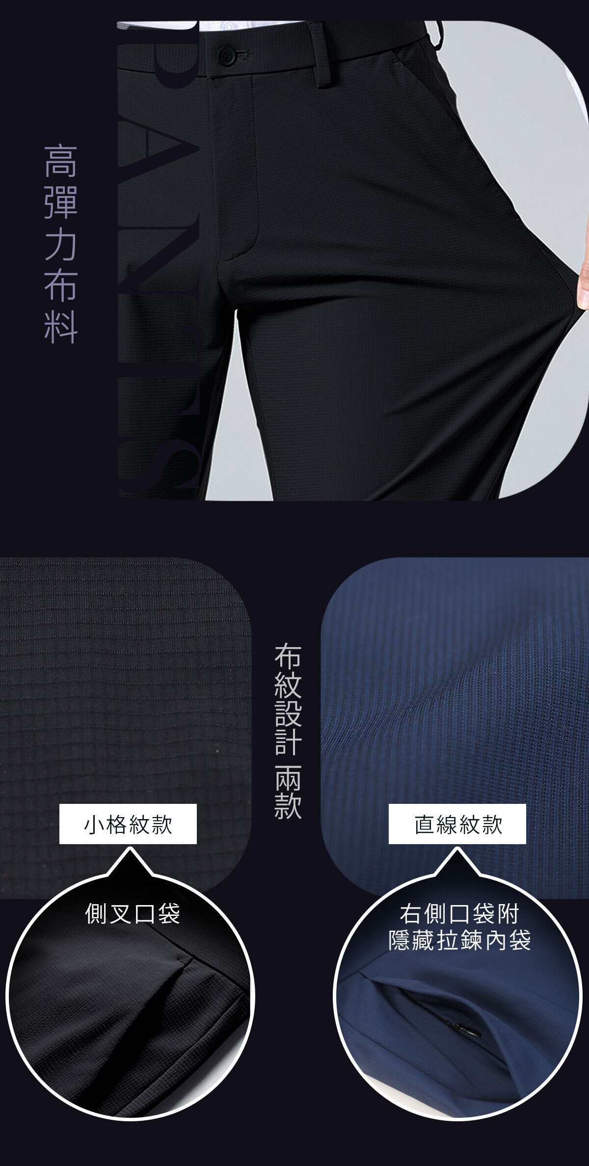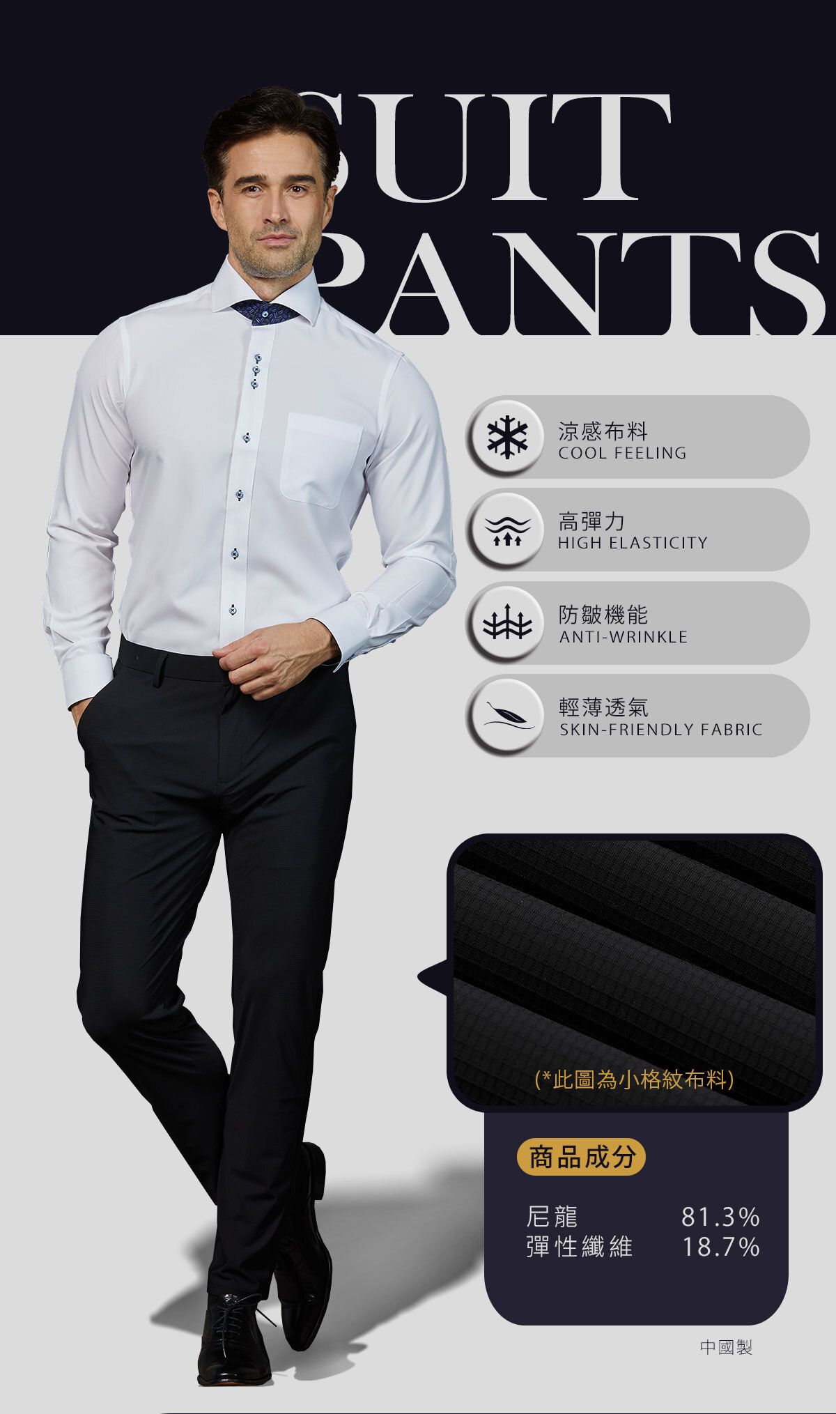 防皺免燙處理,即使一整天坐辦公室或出差,褲子依然筆挺有型。