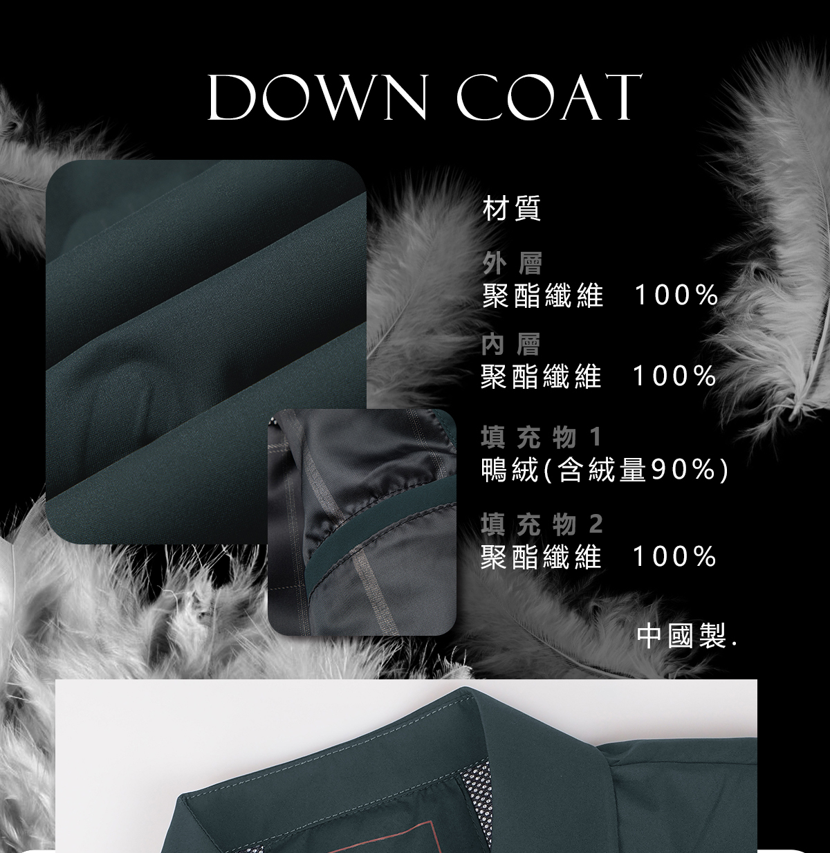 【挺版剪裁】:融合襯衫領與西裝剪裁,打造無臃腫感的羽絨輪廓,時尚與實用兼。