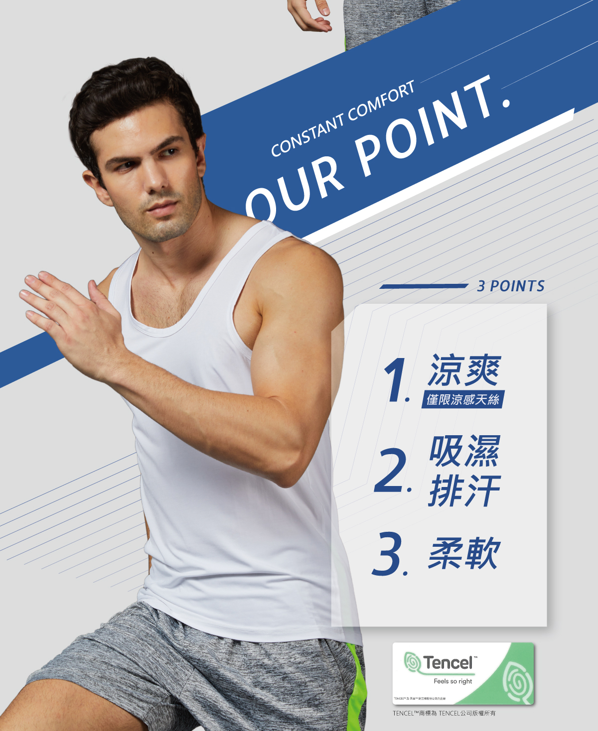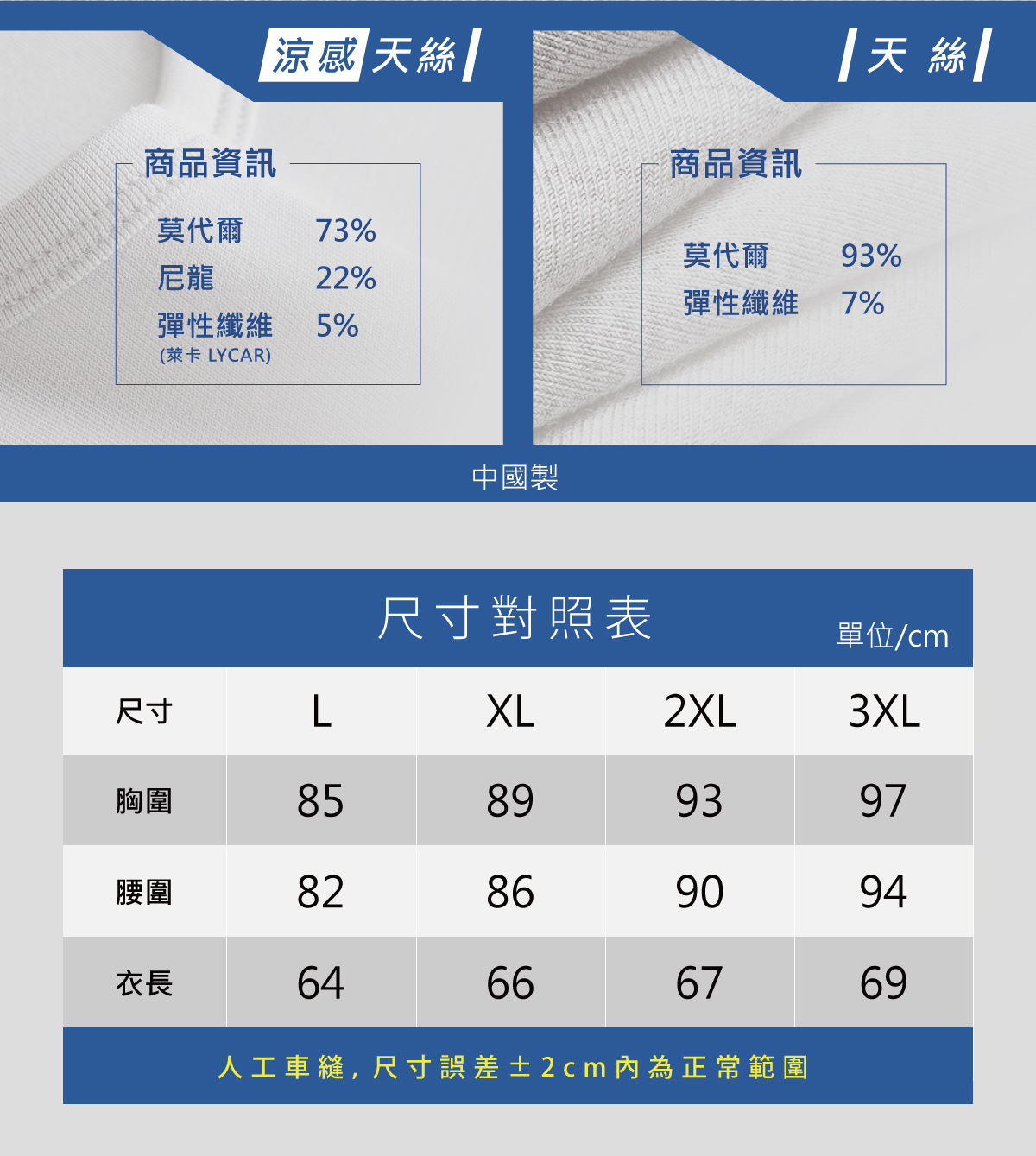 🌳73%Tencel天絲棉吸汗、透氣。